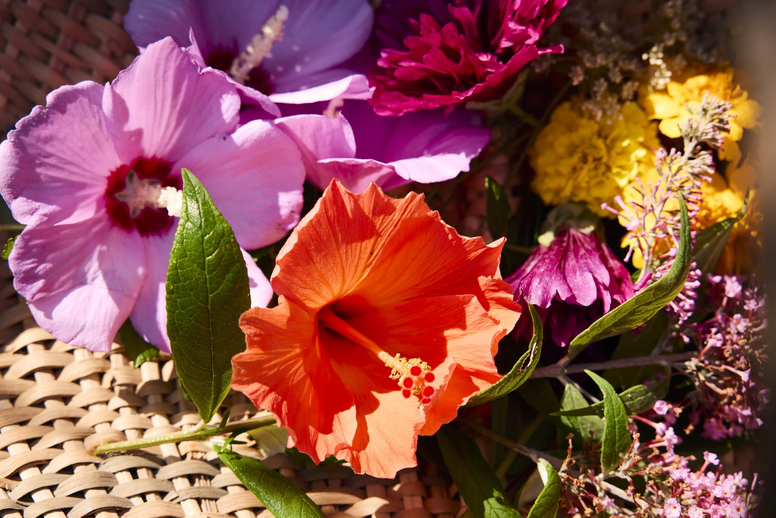 Rose of Sharon, hibiscus, holyhock, marigold, butterfly bush…