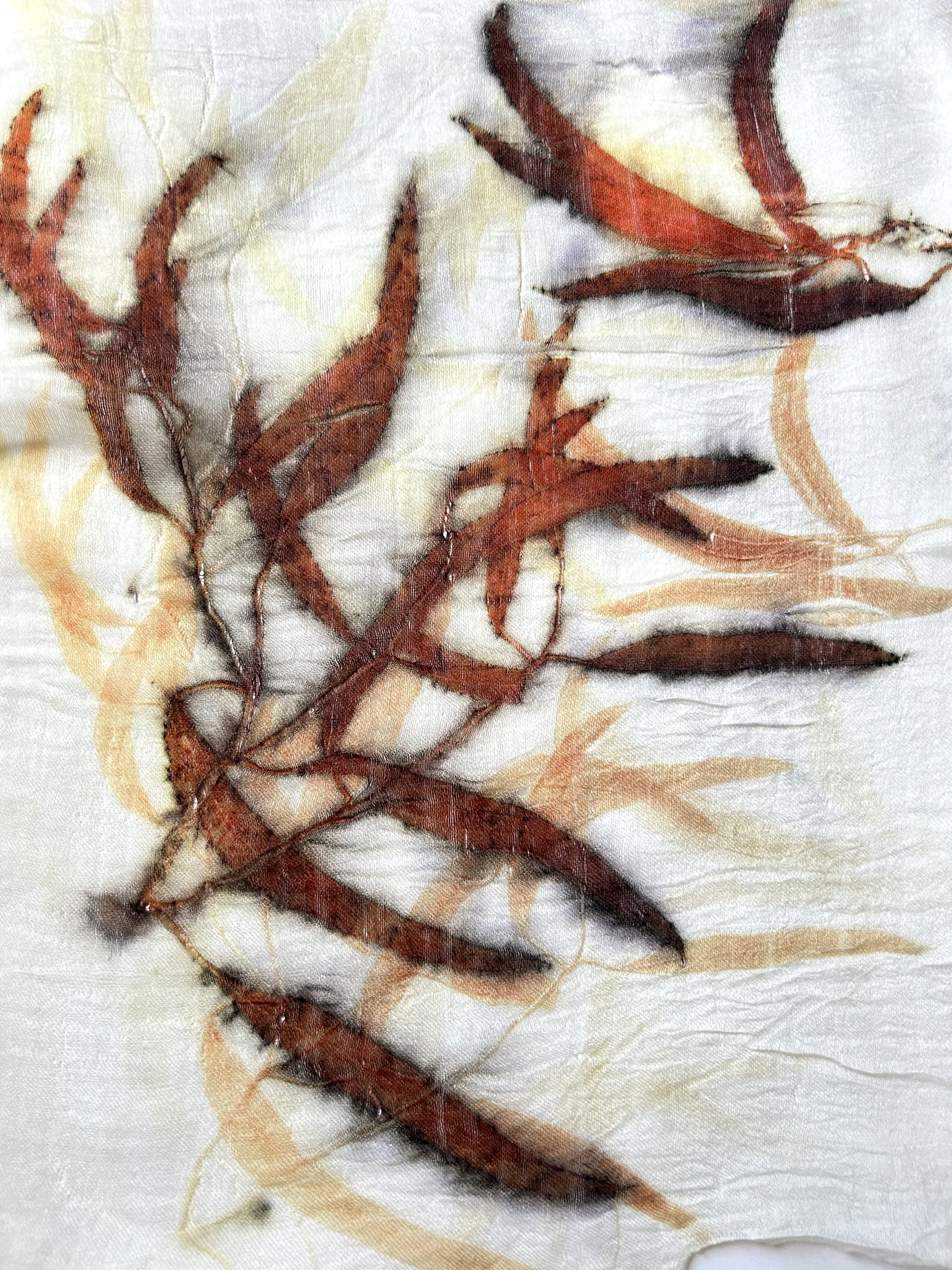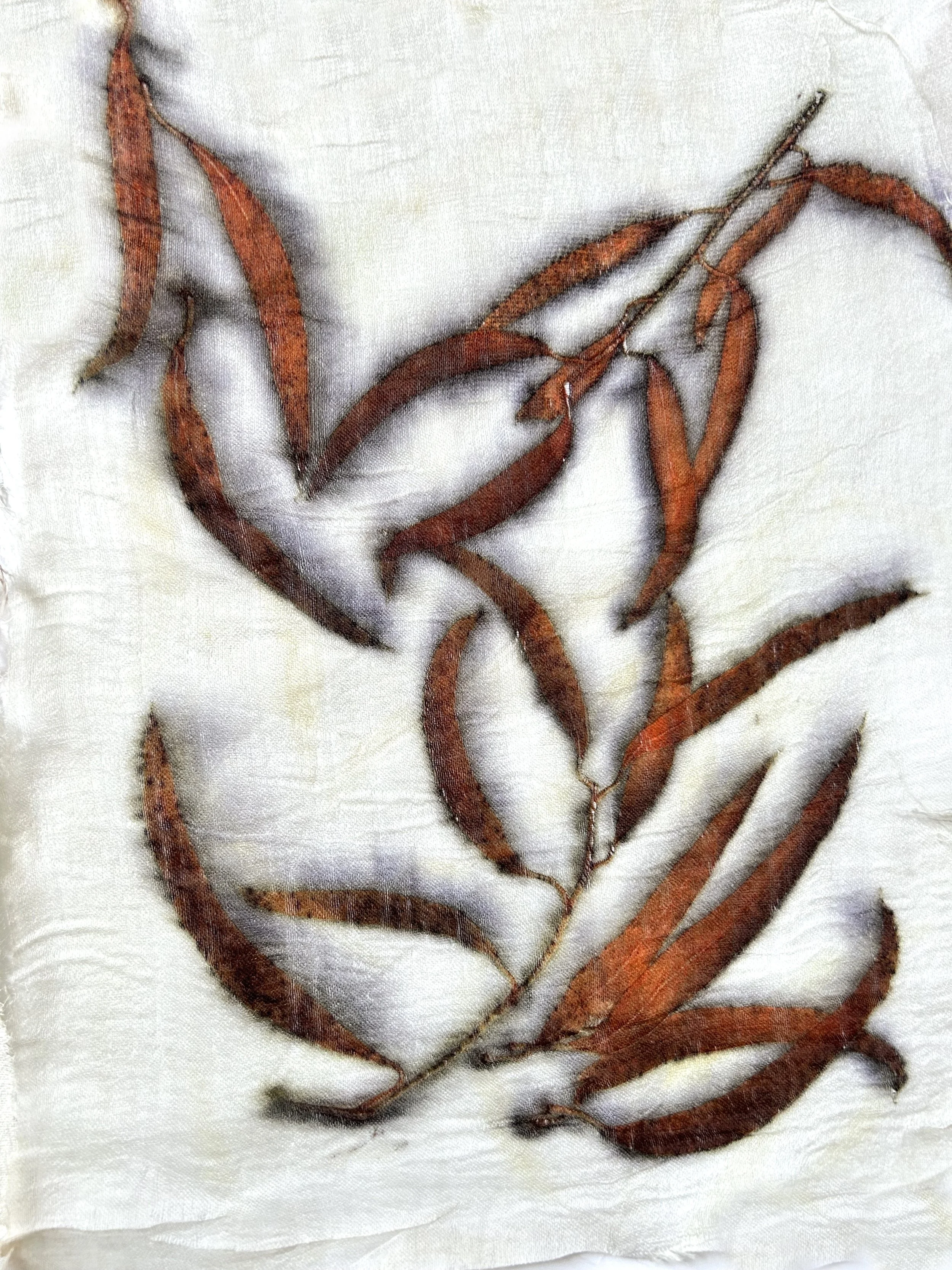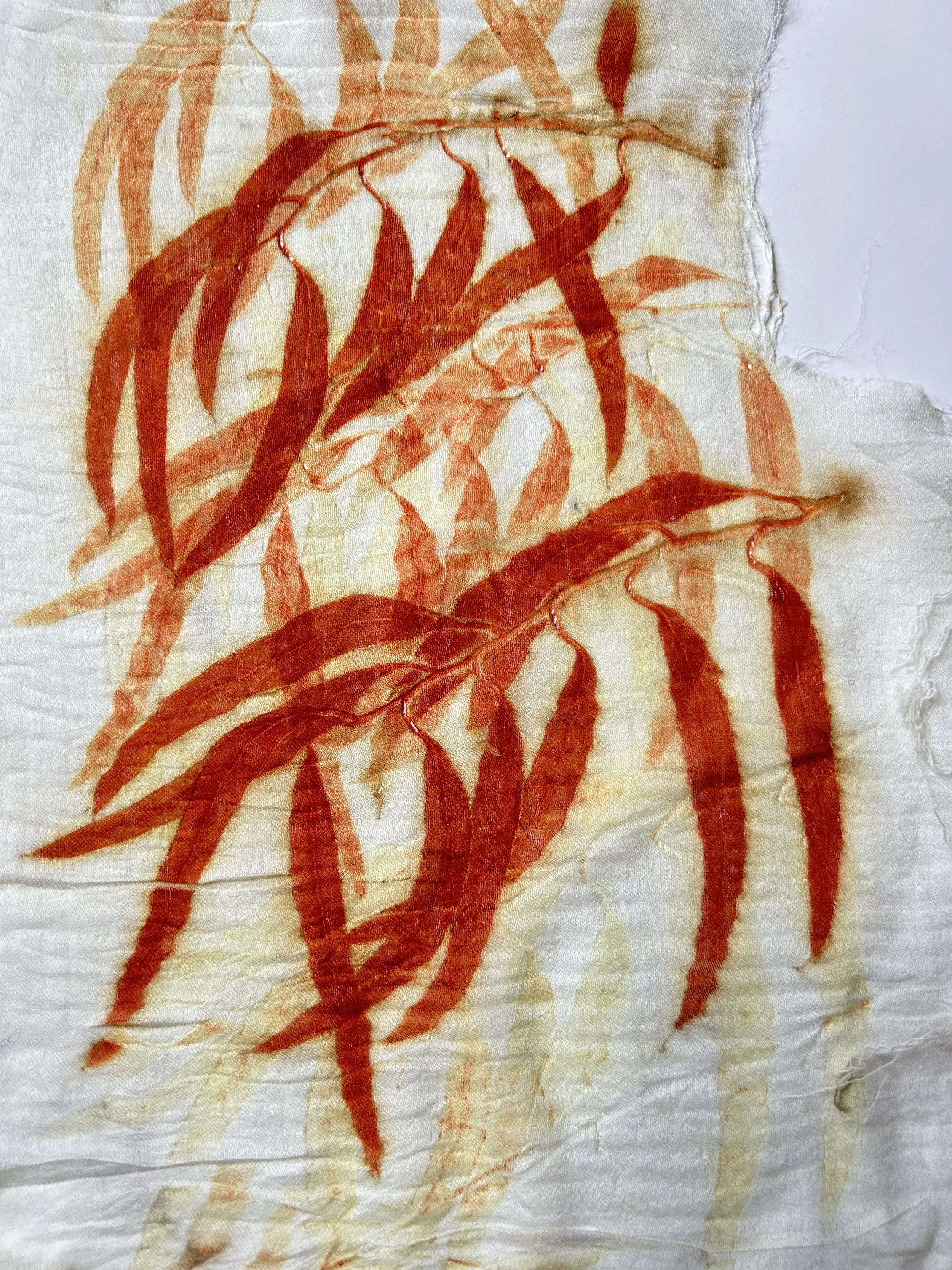 The red from eucalyptus is one of nature’s most generous gifts — earthy, vivid, and alive. Each print on silk or wool carries the warmth of the plant.