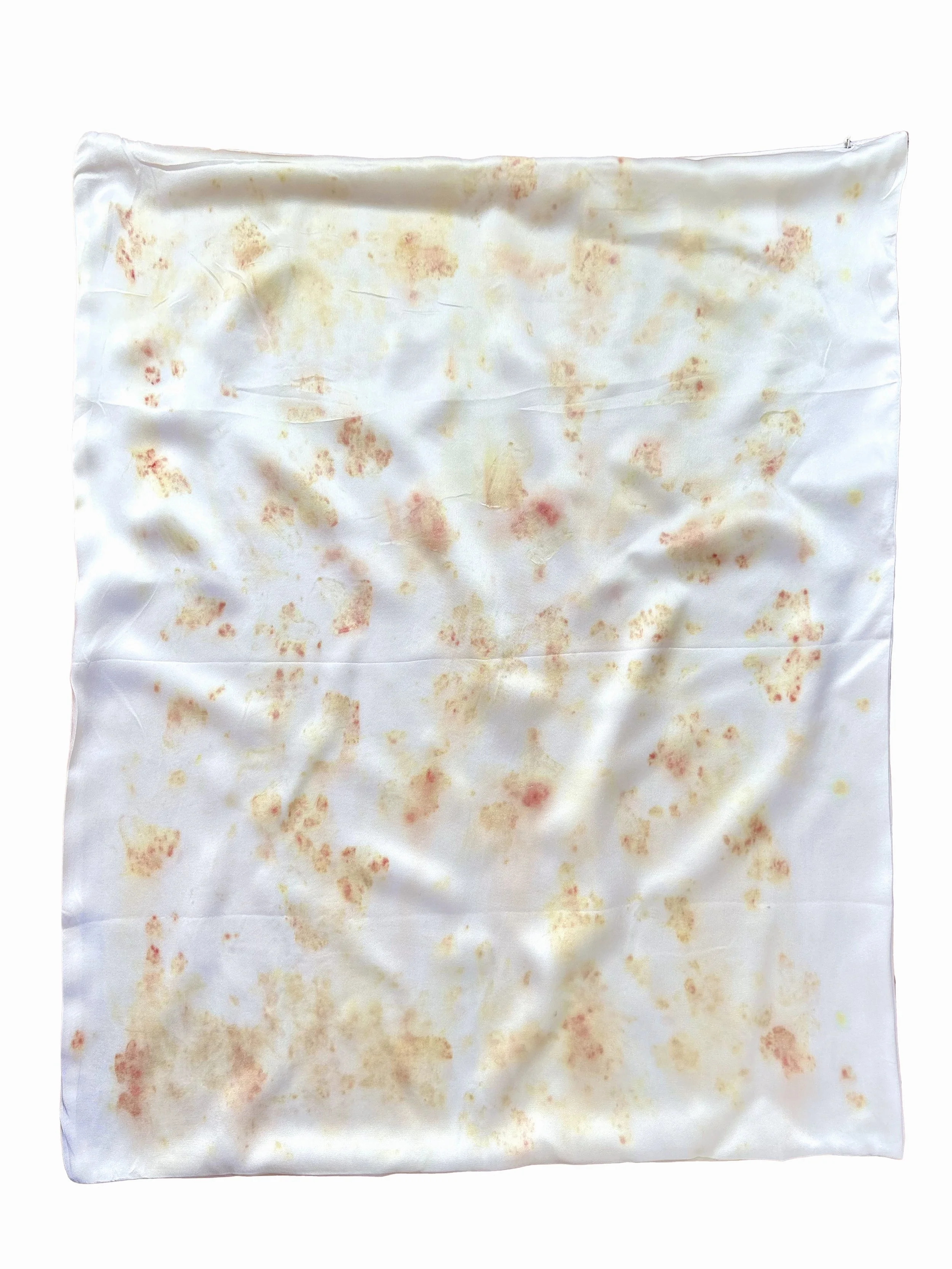 Care: Flora Obscura silk goods are hand-printed with flowers and plant matter, so please hand wash your items in cold water with a gentle detergent (like 7th Generation or a sulfate-free shampoo) and dry in the shade. Variation in colors, prints and patterns awaken the senses, you’ll sleep sweet dreams on your one-of-a-kind pillowcase.